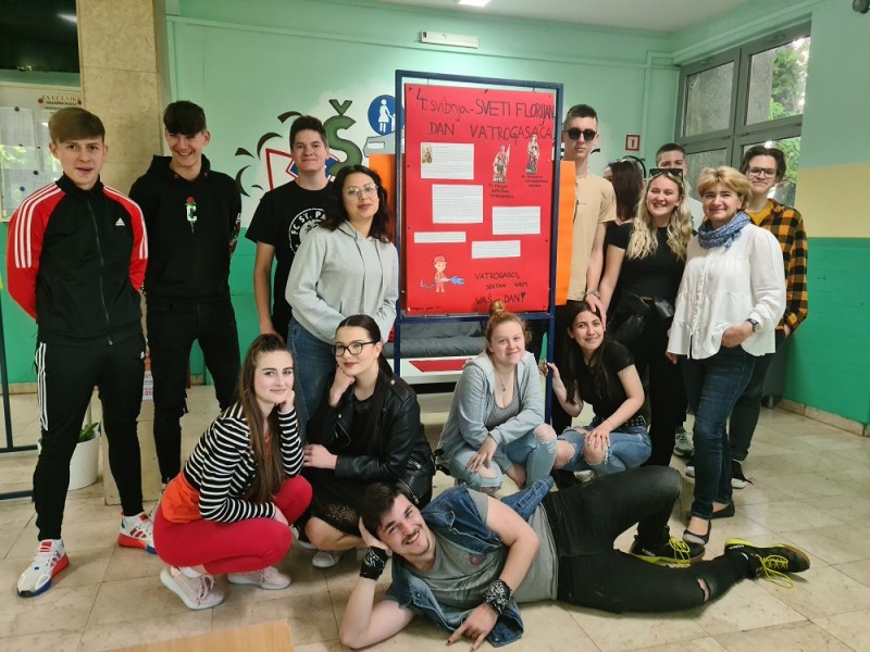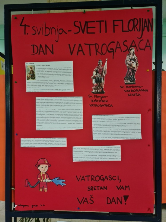 Učenici 2. D razreda, članovi vatrogasne grupe, povodom Dana sv. Florijana, zaštitnika vatrogasaca, izradili su i postavili plakat u predvorju škole te na taj način obilježili i Međunarodni dan vatrogasaca.