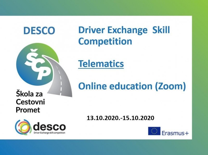 Od 13.10.- 15.10. 2020. u sklopu DESCO projekta održana je online edukacija pod temom Telematika. Edukaciju je provodila Škola za cestovni promet u Zagrebu.