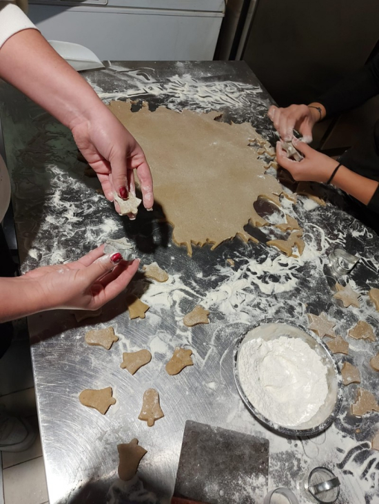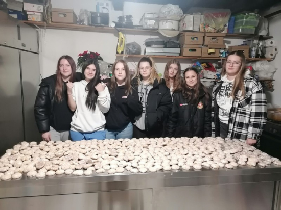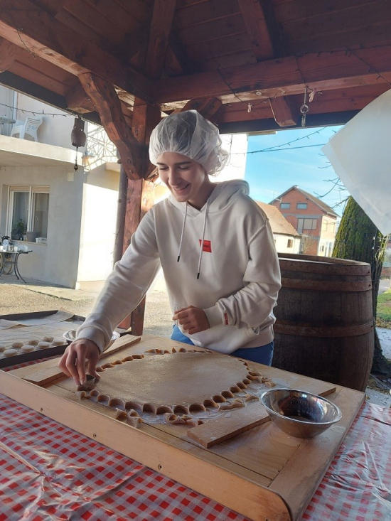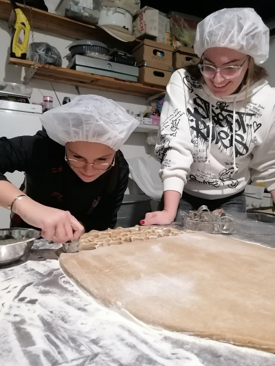 U ponedjeljak smo bili u gostima kod naše drage profesorice Marije Robić koja je i u mirovini jako aktivna. Na radionici izrade tradicionalnih kolača upoznala nas je s tradicijom i kulturnom baštinom Turopolja a uz njenu pomoć izradile smo medenjake koje već danas možete kušati na humanitarnom sajmu koji vas očekuje u predvorju. Dođite, učinite dobro djelo i zasladite se medenjacima!