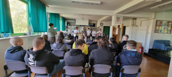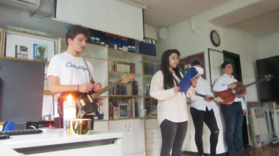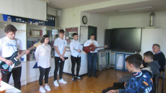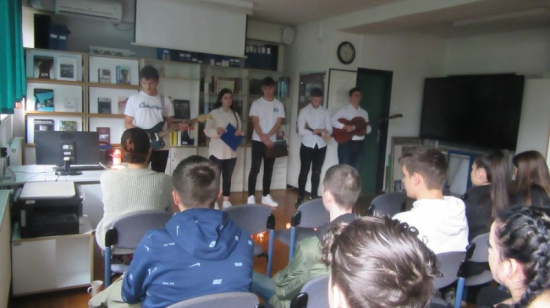 U petak, 17. studenog, u školskoj knjižnici obilježili smo Dan sjećanja na žrtve Domovinskog rata i Dan sjećanja na žrtvu Vukovara i Škabrnje glazbeno-literarnim programom u kojem su pod vodstvom prof. Goleš Krinfokai i prof. Hadrovića sudjelovali Zlatko Hanžek (1.b), Rafael Britvec (3.c), Bylbyl Čolakaj (3.d), Monika Tomaz (3.i) i Antonio Zidar (3.i). Učenici Zlatko (brač), Rafael (bisernica) i Antonio (elektična gitara) svojim instrumentalnim izvedbama pratili su Moniku i Bylbyla koji su čitali tekstove Siniše Glavaševića nastale u posljednjim danima prije pada Vukovara.