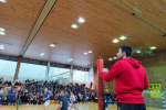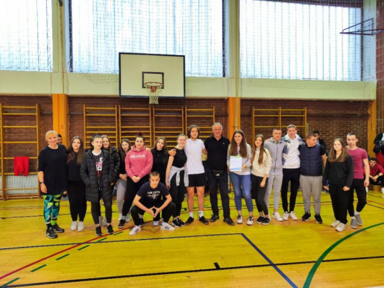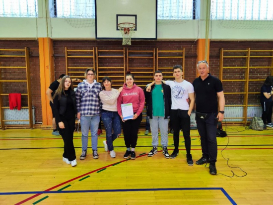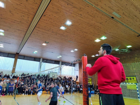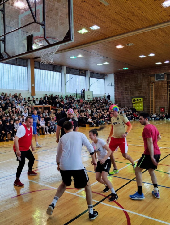 Uzbudljivo okupljanje, smijeh i šarenilo - sve to su bile ključne komponente održanog Dana škole, a mjesto radnje bila je učenicima vrlo dobro poznata dvorana Vinko Bek. Ravnatelj je otvorio program pozdravnim govorom te najavio ono što su svi nestrpljivo čekali – okršaj iskustva i mladosti, profesora i učenika u napetim utakmicama odbojke i košarke. Unatoč žestokom otporu, učenička mladalačka hrabrost nije bila dovoljna za pobjedu protiv iskusnih profesora u odbojci, no učenici su se vratili s novom strategijom - brzim trčanjem i nevjerojatnim potezima i pobijedili profesore u košarci.