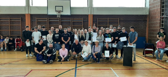 Ravnatelj Tomislav Ćurković iskoristio je ovu prigodu kako bi, osim pobjednika u sportskim nadmetanjima, pohvalio i nagradio one učenike koji su se tijekom ove školske godine isticali svojim radom i uspjesima u školi i izvan nje te uručio certifikate svim učenicima koji su sudjelovali u Erasmus+ projektu Perpetuum Mobile 9.