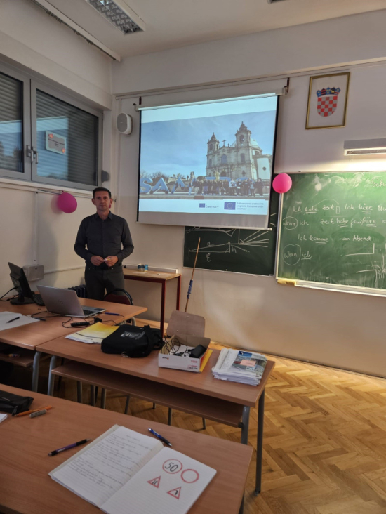 U sklopu Erasmus dana u Školi za cestovni promet nastavnik Tomislav Kučina je učenicima i nastavnicima prezentirao mogućnosti koje nudi Erasmus program. Na primjeru stručne prakse učenika i stručnog usavršavanja nastavnika u sklopu projekta Perpetuum Mobile 8 koje se odvijalo u gradu Bragi u Portugalu prikazao je kako se ostvarila jedna od mobilnosti.