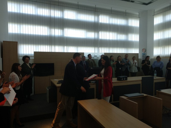 Državna smotra simuliranih suđenja održana je u subotu, 9. ožujka 2019. godine, u prostorijama Općinskog suda u Novom Zagrebu. Sudjelovali su učenici iz 24 škole koji su kaznenu parnicu pod nazivom „Državno odvjetništvo RH - ured za suzbijanje korupcije i kriminaliteta protiv Ane Grabar“ izveli pred 12 sudaca koji su donosili presude. Simulirana suđenja odvijala se su u dva kruga tako da je svaka škola iskusila i ulogu tužitelja i ulogu branitelja. Naša škola je na Smotri sudjelovala drugi put, ove godine sa šest učenika: Ira Godrijan, Romina Novaković i Helena Picek iz 2.e razreda, Vito Kračun i Noa Perić iz 3.d razreda i Monika Bradarić iz 3.e razreda uz mentorstvo nastavnice Ivane Zelenike.