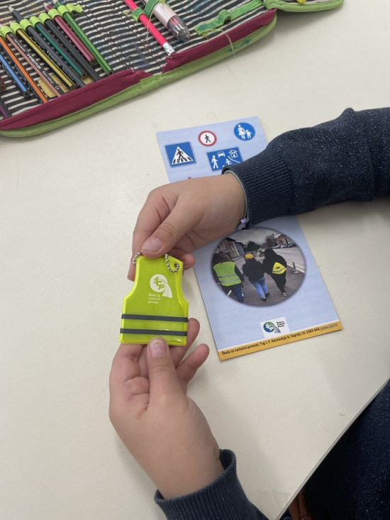 Edukaciju o sigurnosti pješaka u cestovnom prometu su provodili učenici 3. razreda koji se obrazuju za smjer Tehničar cestovnog prometa te slušaju fakultativni predmet Sigurnost pješaka u cestovnom prometu pod mentorstvom nastavnice Maje Stanić. Na edukaciji je prisustvovalo oko 60 učenika 1.A, 1.B i 1.C razreda Osnovne škole Petra Zrinskog iz Zagreba. Već petu godinu za redom Škola provodi educiranje najmlađih sudionika u prometu u cilju poboljšanja sigurnosti cestovnog prometa. U sklopu edukacije svi sudionici dobili su reflektirajuće privjeske i bedževe kako bi bili uočljiviji u prometu.