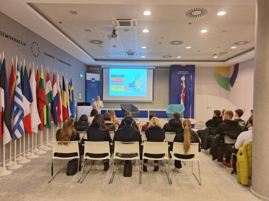 Učenici koji su uspješno prošli natječaj za mobilnosti u šk. god. 24./25. posjetili su Kuću Europe kao pripremni dio Europske radionice u pratnji voditeljice projekta Željke Turković i prof. Josipa Hadrovića člana projektnog tima. Prezentacija je bila iznimno korisna, edukativna i informativnog karaktera na kojoj su učenici stekli osnovna znanja o svojim pravima i obvezama kao europskih građana.