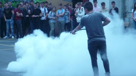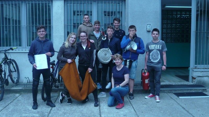 U srijedu, 23. svibnja 2018. godine u 10 sati i 20 minuta oglasilo se alarmno zvono. Učenici, iznenađeni i razočarani što su morali prekinuti s pisanjem kontrolne zadaće ili zbog toga što nisu stigli usmeno prezentirati svoje cjelokupno znanje, nastavnici i ostali djelatnici ŠCP-a evakuirali su se i sakupili u školskom dvorištu. Vrijedni i ustrajni učenici i učenice 2. B razreda izveli su vježbu gašenja požara ugušivanjem priručnim sredstvom – poznatom narančastom dekom (Mateja Vitko i Kiara Božinski), vatrogasnim aparatom sa suhim prahom (Kristian Radman) te vodom (Rado Filić, Luka Kosec, Ivica Vidović, Nikola Rašić, Luka Varga) i vježbu pružanja prve pomoći. Matija Peček je pokazao ABC pristup i reanimaciju unesrećene Anne, David Pisačić imao je imobiliziranu šaku, Matej Ciprić imobiliziranu podlakticu, a Ivan Kukrika zamotanu glavu. O svemu što se zbiva izvještavao nas je Veki (Vedran Filipić). Vatru je potpaljivao domar Vlado, prof. Sanja Tirić bila je tehnička podrška, učenike je za vježbu iz prve pomoći pripremio nastavnik prve pomoći, Dino Šisl, dr. med., a prof. Lovorka Vidić tjednima je uvježbavala vatrogaskinje i vatrogasce kako bi svojom brzinom, spretnošću i učinkovitošću vatru ugasili i sve nas spasili. Veliko HVALA spremačicama koje, iako su po ne znam koji put brisale vodu ispred A3-5 i danas uprašene prozore i hodnike, imale razumijevanja za sve nas (pri tom potajno promišljajući: Srećom, ovo se događa jedanput godišnje!). Lovorka Vidić, prof.