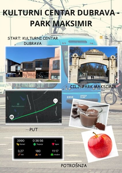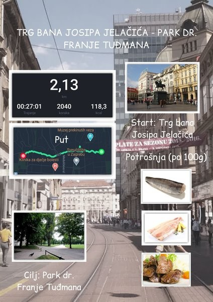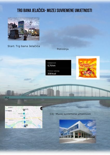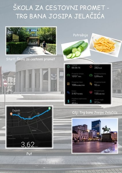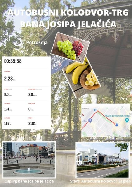 Zagreb je grad po mjeri koraka a koliko koraka je potrebno za doći do nekih poznatih destinacija možete vidjeti na plakatima koje su učenici izradili u sklopu Projekta građanin. Izađite koju stanicu ranije iz tramvaja i prošetajte. Koristi šetnje također možete vidjeti na plakatima.