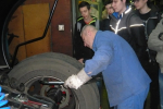 Susretljivi i duhoviti zaposlenici pokazali su nam kako se skida kotač s autobusa, postupak postavljanja i skidanja pneumatika s naplatka i uravnoteženje kotača.