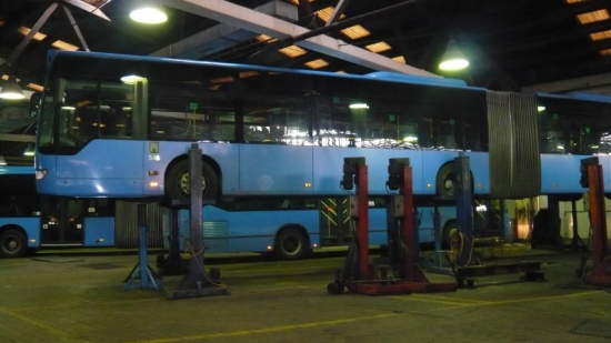 Objasnili su nam što se sve u servisnoj radionici radi: preventivna provjera tlaka u pneumaticima, popravci, ručno i automatsko pranje autobusa, ….