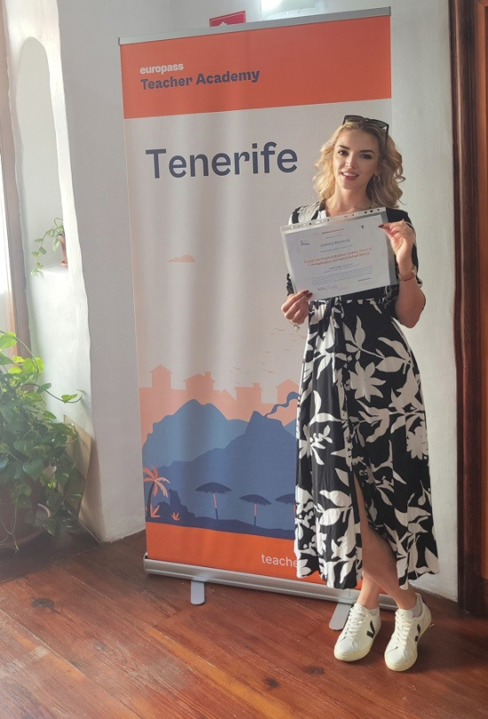 Erasmus + projektne aktivnosti STEP 4 nastavljamo na vulkanskom otoku. Profesorica Jasmina Stamenić sudjelovanjem na edukacijskom tečaju "Design the Positive: Positive Thinking, Positive Communication and Positive School Spaces" predstavila je našu školu kolegama iz različitih zemalja na Tenerifeu i uspostavila odnose za buduće suradnje. Edukacija je uključivala praktične radionice radi unaprjeđenja pozitivnog pristupa školi i obrazovanju. Poseban naglasak stavljen je na pozitivnu komunikaciju s ciljem stvaranja učinkovitijeg kruga pozitivnih odnosa. Temeljem usvojenih znanja sudionici su osmislili projekte primjenjive u svojim školama, s naglaskom na razvijanje ugodnog i motivirajućeg okruženja unutar i izvan učionice te poticanje pozitivnih odnosa u školskoj zajednici.