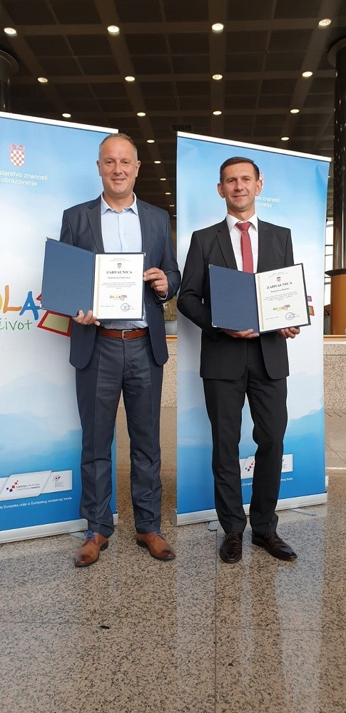 Ove godine je po prvi puta prema novom Pravilniku o nagrađivanju učitelja, nastavnika, stručnih suradnika i ravnatelja u osnovnim i srednjim školama te učeničkim domovima odabrano 510 najboljih odgojno – obrazovnih djelatnika u Hrvatskoj kojima su u subotu 5. listopada, povodom Dana učitelja, na svečanosti u Nacionalnoj i sveučilišnoj knjižnici dodijeljene nagrade. Među njima su i Tomislav Ćurković i Tomislav Kučina, nastavnici strukovnih predmeta iz naše škole koji su se istaknuli svojim nastavnim i stručnim radom te su zasluženo uvršteni među 510 najboljih.