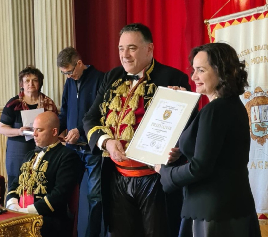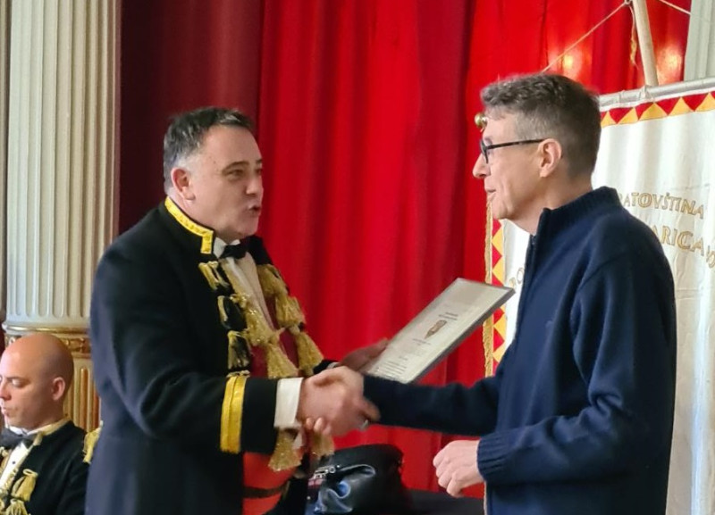 U atriju kazališta održana je svečana dodjela priznanja za promicanje tradicije, vjere, kulturne baštine i običaja bokeljskih Hrvata i njihovih predaka okupljenih u zagrebačkoj Bratovštini. Zasluženo ga je dobio i naš kolega i nastavnik Željko Brguljan. Čestitamo!