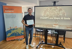 U sklopu programa Erasmus+, naš nastavnik Tomislav Kučina sudjelovao je u međunarodnom stručnom usavršavanju ChatGPT and Basic AI Tools koje je održano u Ateni (Grčka), u organizaciji Europass Teacher Academy. Tečaj je okupio nastavnike iz cijele Europe s ciljem istraživanja kako umjetna inteligencija (AI) može unaprijediti nastavu, olakšati pripremu i motivirati... ...