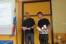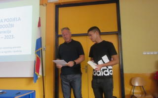 U ponedjeljak, 3. srpnja, u prijepodnevnim satima naši maturanti su zadnji puta kročili u školu kao redovni učenici. Na svečanoj podjeli ravnatelj Tomislav Ćurković obratio im se prigodnim riječima te je najboljim učenicima u generaciji uručio nagrade posebno ističući ovogodišnje pobjednike na državnom natjecanju učenika strukovnih škola koji su kao nagradu za... ...