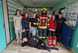 Dana 24. svibnja 2023. godine u našoj školi održana je vježba “Evakuacija u slučaju opasnosti od požara“. Svi djelatnici i učenici u pratnji nastavnika brzo su napustili školsku zgradu i sakupili se u dvorištu gdje su članovi vatrogasne grupe 2.a razreda pokazali kako gasiti vatru ugušivanjem-dekom (Marin i Antonio), vatrogasnim aparatom... ...
