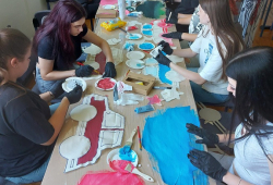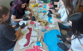 Dana 18. i 19. lipnja u školskoj knjižnici održana su dvije trosatne kreativne radionice šivanja i bojanja tekstila, pod vodstvom Ivane Stećuk, akademske grafičarke. Na radionicama su učenici učili vrste materijala te osnove strojnog rada i krojenja, nakon čega su izrađivali svoje jastuke, koje su kasnije bojali akrilnim bojama i sprejevima. Naravno da su jastuci u obliku... ...