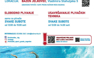 Školski sportski savez Grada Zagreba nastavlja sa slobodnim klizanjem na ŠRC Šalata, slobodnim plivanjem i usavršavanjem plivačkih tehnika na bazenu Jelkovec u okviru programa Odmorko tijekom školske godine. U privitku nalaze se plakati programa kao i upute kako se prijaviti za Odmorko (prijaviti se možete jedino uz iskaznicu Školskog... ...