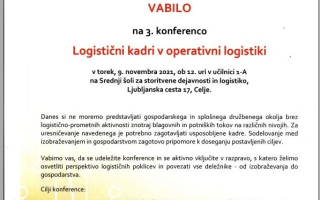 U utorak, 9. studenog 2021. održana je 3. konferencija „Logistički kadrovi u operativnoj logistici“ u Šolskom centru Celje. Konferencija je održana s ciljem poticanja rasprave o važnosti logistike u cestovnom prometu, potrebe boljeg povezivanja gospodarstva i strukovnih škola iz sektora promet i logistika kao i zbog potrebe osuvremenjivanja strukovnih kurikuluma iz...
