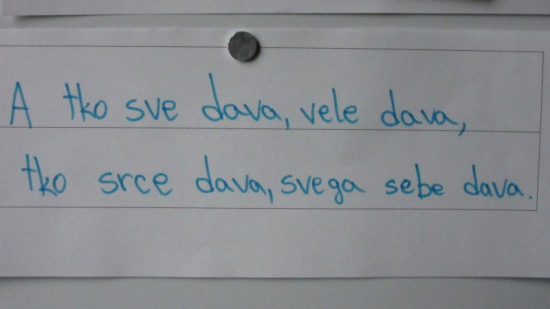 U školskoj knjižnici smo posvetili nekoliko sati obilježavanju velike obljetnice našeg najznačajnijeg komediografa, velikog Marina Držića. Podsjetili smo se detalja iz Držićeva uzbudljiva života, obnovili znanja o njegovim djelima s naglaskom na Dunda Maroja i poslušali snimku znamenita Pometova monologa u izvedbi Pere Kvrgića. Na izabranim ulomcima iz Držićevih djela otkrivali smo ljepotu Držićeva jezika, svevremenost i aktualnost njegovih spoznaja o ljudskom društvu.