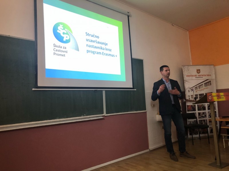 Na državnom stručnom skupu za strukovne nastavnike iz sektora Promet i logistika održanom u Slavonskom Brodu 23.3.2018. godine u organizacijji Agencije za strukovno obrazovanje i obrazovanje odraslih, naši nastavnici Tomislav Kučina, Igor Jelić i Maja Balenović podijelili su s kolegama znanja i iskustva stečena na stručnim usavršavanjima u Portugalu, Švedskoj, Danskoj i Finskoj u okviru projekta Perpetuum mobile 4, Erasmus+.