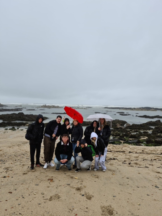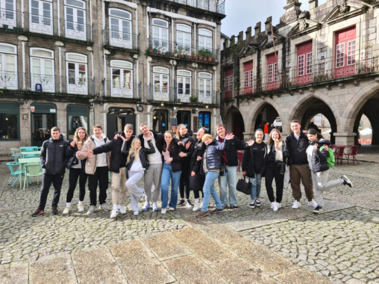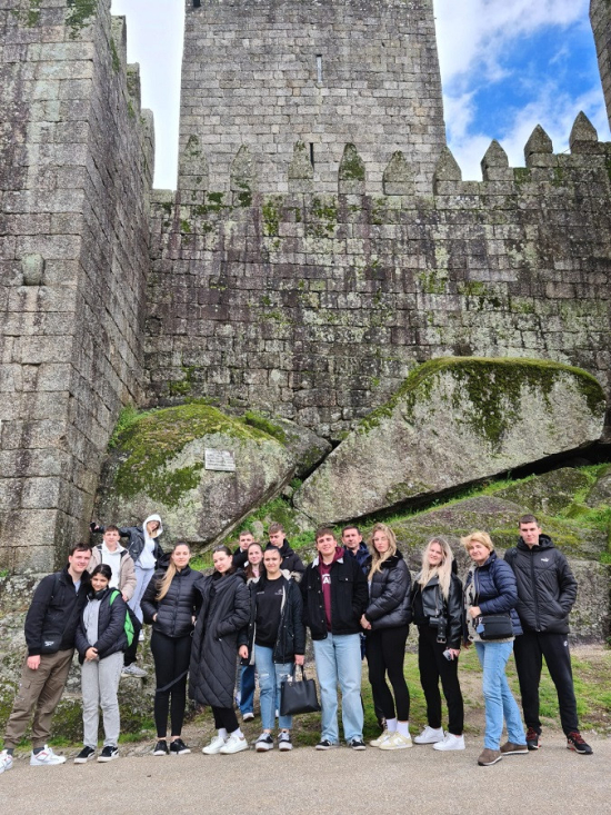 Došao je kraj našeg boravka u Bragi. Djelatnici tvrtke Braga-mob na svečanoj večeri podjelili su nam priznanja, a kao nagradu za uloženi trud i zalaganje organizirali su izlet na obalu Atlantika, u mjesto Viana do Castelo. Iako je puhalo i pljuštalo, prostranstvo i veliki valovi su nas ostavili bez daha. Slijedio je razgled grada Guimaraesa koji se slavi kao rodno mjesto nacije, prva prijestolnica Portugala. Prošetali smo povijesnom jezgrom, počastili se kavom i finim kremastim natama i, naravno, fotografirali na glavnom trgu Largo da Oliveira te ispod bedema koji okružuju kulu utvrde Guimaraes. Složili smo se da ce nam boravak u Portugalu ostati zauvijek kao draga uspomena na korisno provedena dva tjedna na praksi, druženja, izlete i prvi let avionom! Detalji slijede usmeno u školi u ponedjeljak, 12. veljače.