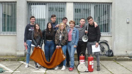 Vatru je potpaljivao domar Vlado, Sanja Tirić, prof. bila je tehnička podrška, učenike je za vježbu iz pružanja prve pomoći pripremila nastavnica prve pomoći dr. Maja Marić Bajs, a Lovorka Vidić, prof. tjednima je uvježbavala svoje vatrogaskinje i vatrogasce kako bi svojom brzinom, spretnošću i učinkovitošću ugasili požar i sve nas spasili.