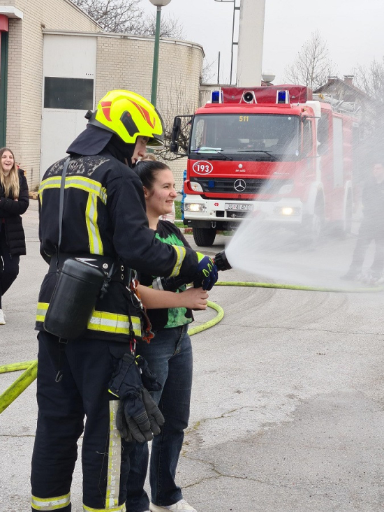 Nakon uvodnog predavanja o radnom danu vatrogasaca, radu postrojbe, vatrogasnoj opremi u JVP, vatrogasac Požega dao nam je korisne savjete što (ne) napraviti u slučaju požara u kući i naglasio važnost prometne kulture vozača na cesti kao i vozačkih sposobnosti vozača vatrogasnog vozila.