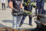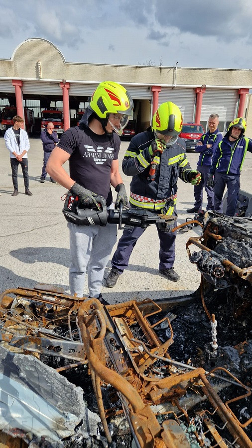 Nakon uvodnog predavanja o radnom danu vatrogasaca i radu postrojbe, prezentirali su nam vatrogasnu opremu vatrogasca, dojavni centar (objasnili su nam tijek intervencije od prijave požara (nezgode) do izlaska vatrogasaca na teren) i vatrogasna vozila. Detaljno su nas upoznali s uređajima, strojevima i opremom navalnog vatrogasnog vozila, omogućili da se okušamo u rukovanju kliještima i razvlačimo metalne dijelove vozila. Provozali su nas vježbalištem glumeći da jurimo prema požarištu. Ti-ruuu- li- ruuu! Bili smo radosni poput vrtićke grupe mališana.