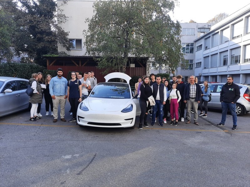 U sklopu fakultativnog predmeta Elektromobilnost dana 2. 11. 2022. imali smo priliku u našoj školi ugostiti tvrtku Electronic Vehicle Clinic. Navedena tvrtka nam je predstavila električni automobil TESLA Model 3. Prezentacija je bila popraćena velikim interesom učenika te kvalitetnim pitanjima. Dakako, učenici su imali priliku i iskusiti kakav je osjećaj voziti se u Modelu 3.