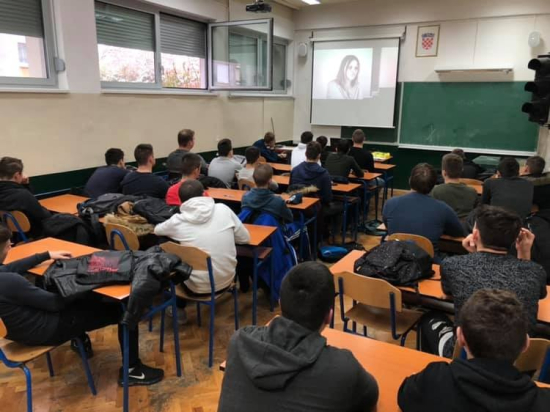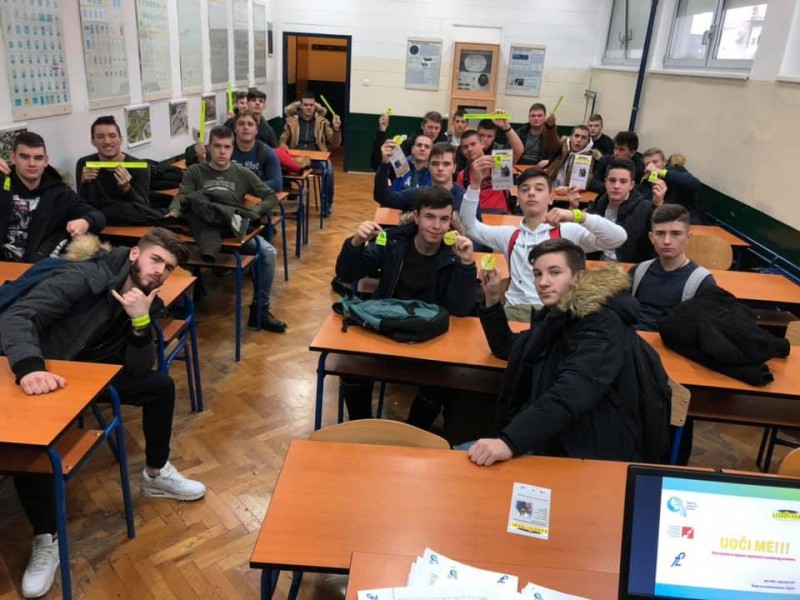 Učenici 2.f razreda Škole za cestovni promet iz Zagreba sudjelovali su na edukaciji u sklopu projekta ˝Uoči me˝. Nastavnik Igor Jelić prikazao je moguće opasnosti prilikom kretanja kolnikom i mjere za povećanje sigurnosti i uočljivosti pješaka u prometu.