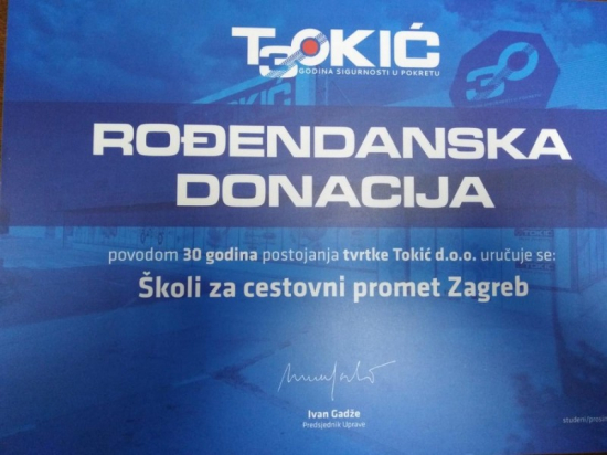 U današnje vrijeme kada smo okruženi sve većom količinom negativnosti, u vrijeme kada gospodarska aktivnost sve osjetnije zamire i radnici ostaju bez radnih mjesta sve su rjeđi primjeri ulaganja privrednika u obrazovni sustav. Međutim, još uvijek postoje tvrtke koje su, svjesne važnosti obrazovnog sustava, spremne izdvojiti dio svojih sredstava za njegovo unaprjeđenje. Takva tvrtka je Tokić d. o. o., jedan od vodećih trgovaca autodijelovima i popratnom opremom u Hrvatskoj.
