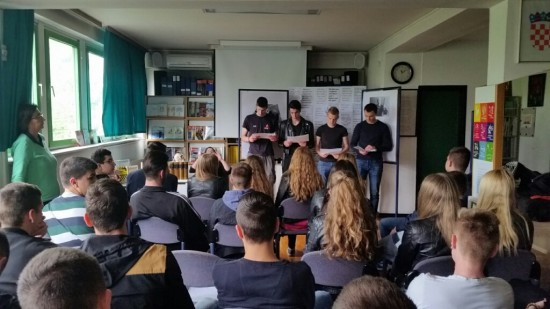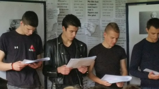 prema tekstu iz knjige T. Dicksa priredila je i uvježbala Manuela Goleš Bašić, prof. hrvatskoga jezika. Tekst su uspješno izveli učenici Marko Hegol,3.I, Marko Pavić,3.A,Bruno Krajinović,3.A, dok je Sofija Manola 4.E izvrsno govorila Shakespeareov sonet u izvorniku. Ovim su se i učenici naše škole uključili u obilježavanje Shakespeareove godine.